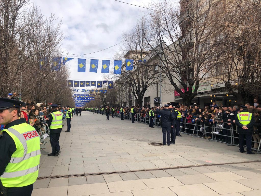 Me rastin e 14 vjetorit të shpalljes së pavarësisë së Kosovës, pas pak minutave do të fillojë edhe parakalimi i kuadrateve të FSK-së dhe të Policisë së Kosovës në sheshin “Nëna Terezë”.