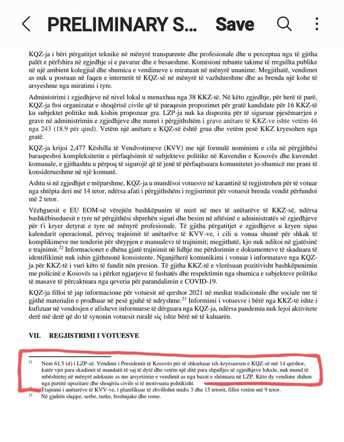“E kemi parë që Lista Serbe e ka monopolizuar jetën politike të serbëve të Kosovës, madje ka pasur raste të kërcënimit dhe presioneve nga kandidatët e Listës Serbe dhe aktivistëve të tyre. Për fat të keq gratë kanë qenë të nën përfaqësuara në gara për kryetarë të komunave, financimi i fushatës nuk ishte transparentë”, tha Mandl.