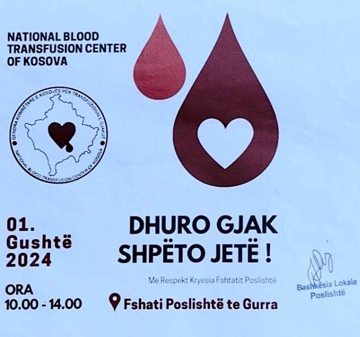 Të vazhdojmë traditën më bujare dhe fisnike – dhurimin e gjakut, që nga vitet 90-ta kur Kosova ishte në flakë, ku të rinjtë e fshatit u mblodhën në shtëpinë e familjes Hajdari, dhe të cilët me gjakun e tyre, heronjtë e heshtur, u dolën në ndihmë të plagosurve dhe të sëmurëve të Kosovës martire. Andaj ftojmë të gjithë ata që gëzojne shëndet të mirë nga mosha 18 – 65 vjeç, të iu bashkangjiten këtyre heronjëve të pazëshëm dhe të jetë iniciativë tradicionale.