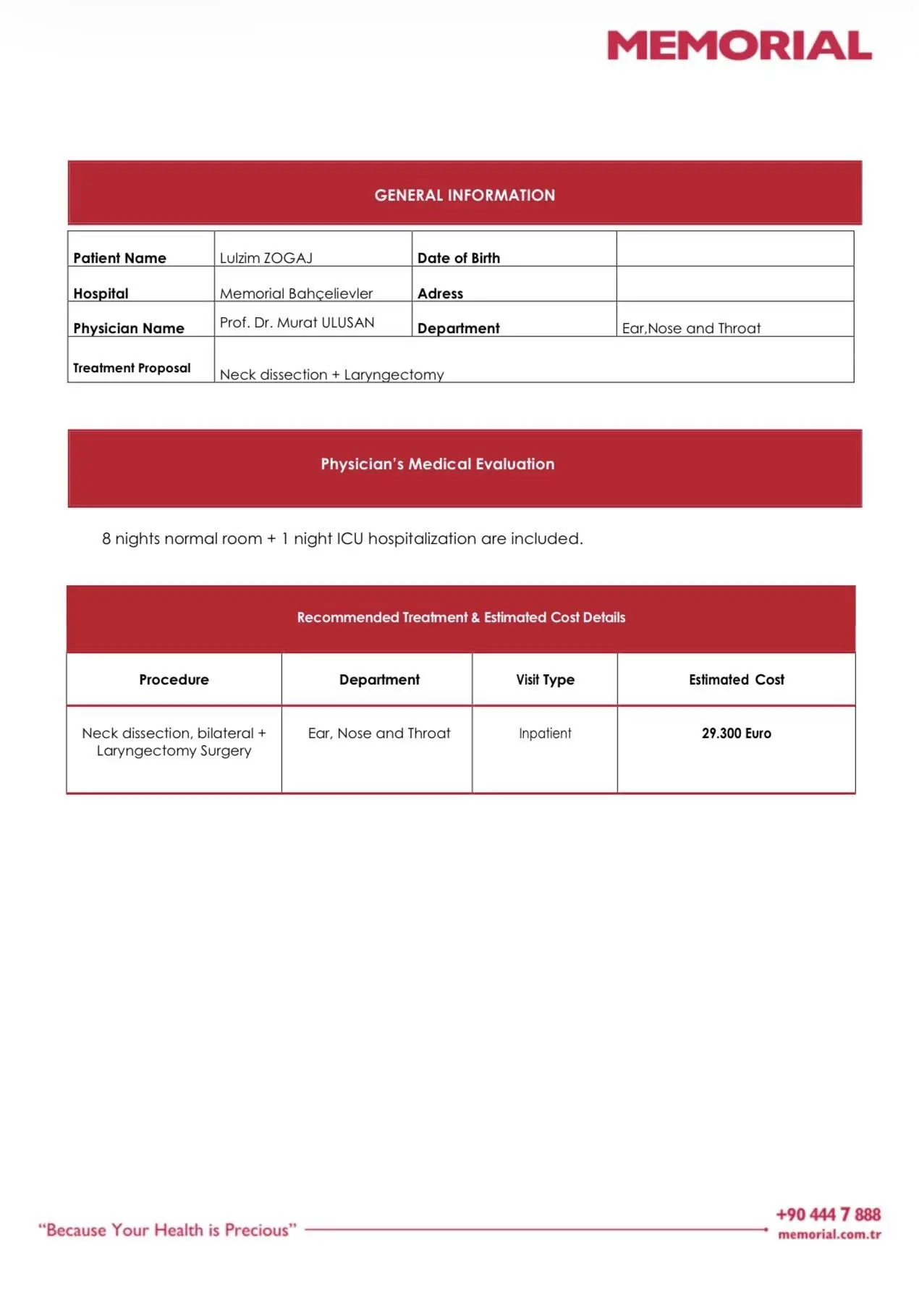 Sipas njoftimit të familjes, kosto e operimit është 29.300 euro, një shumë e papërballueshme, sidomos kur familja e tij thekson se jeton vetëm me ndihma sociale.