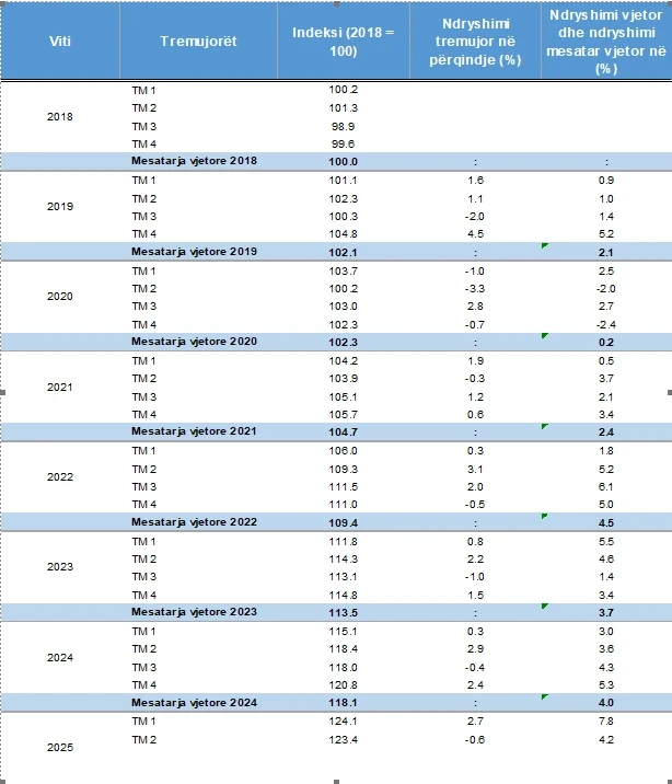 Sipas statistikave, ndryshimi mesatar vjetor i çmimeve të banesave kulmoi në vitin 2022, me rritje prej 4,5 për qind. Ky vit pasohet nga 2024 me 4,0 për qind dhe 2023 me 3,7 për qind, duke reflektuar kërkesë të lartë dhe zgjerim të qëndrueshëm të tregut të banimit.