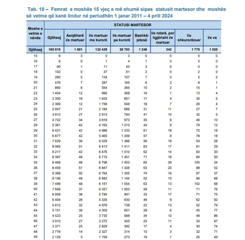 Agjencia e Statistikave të Kosovës ka publikuar raport me të dhënat për “Femrat e moshës 15 vjeç e më shumë që kanë lindur fëmijë në periudhën 1 janar 2011 – 4 prill 2024”, të dala nga Regjistrimi i Popullsisë më 2024.