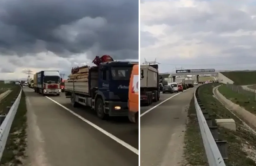 Në një video shihet se si pasojë e aksidentit janë krijuar kolona të mëdha.