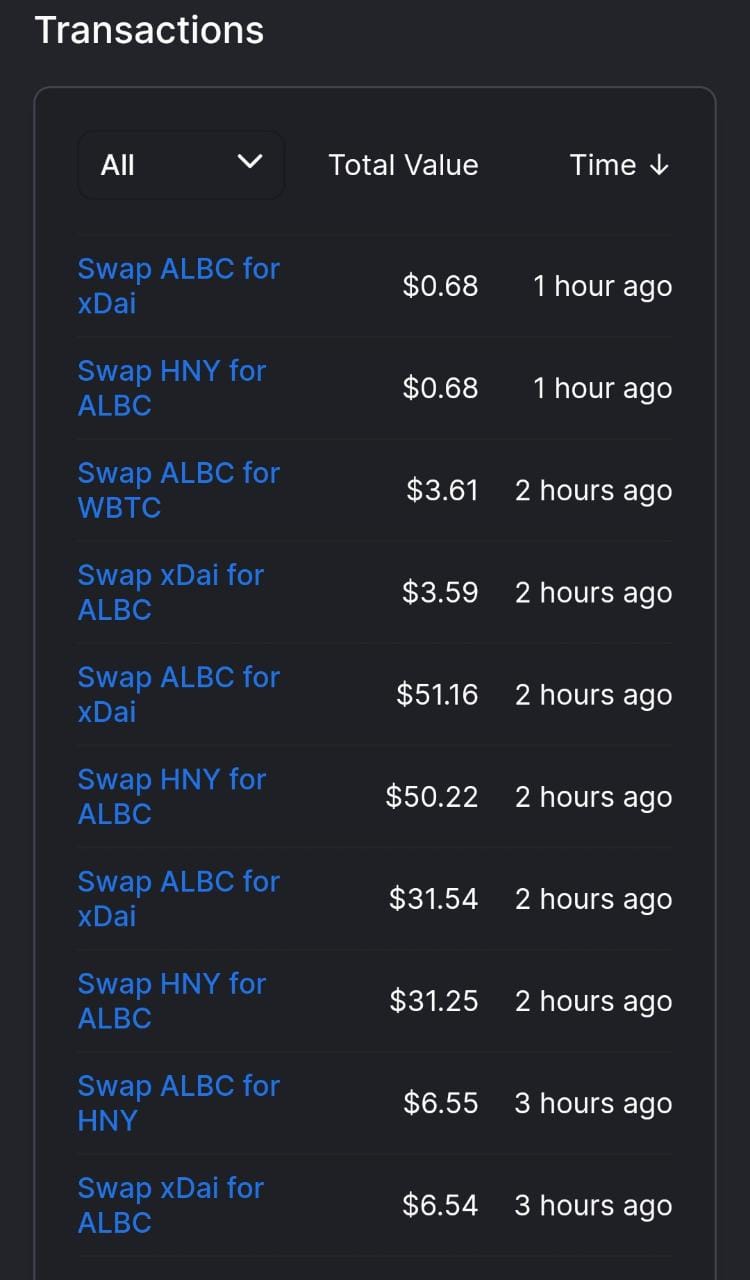 Albcoin aktualisht është i shpërndarë dhe vepron përmes dy blockchain-eve, Ethereum, ku është “vendbanimi”origjinal i tij dhe xDai. Në treg janë hedhur 1 milionë njësi kriptovaluta shqiptare, të cilat janë prodhuar në të njëjtën kohë kur u krijua. Në qarkullim janë mbi 40 mijë ALBC dhe janë kryer qindra transaksione, sipas përfaqësuesëve.