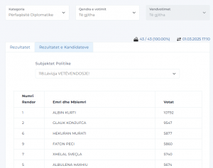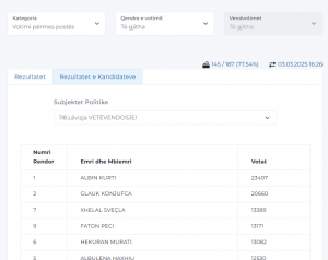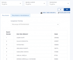 Nga votimi i rregullt, Kurti ka marrë 290 mijë e 862 vota.