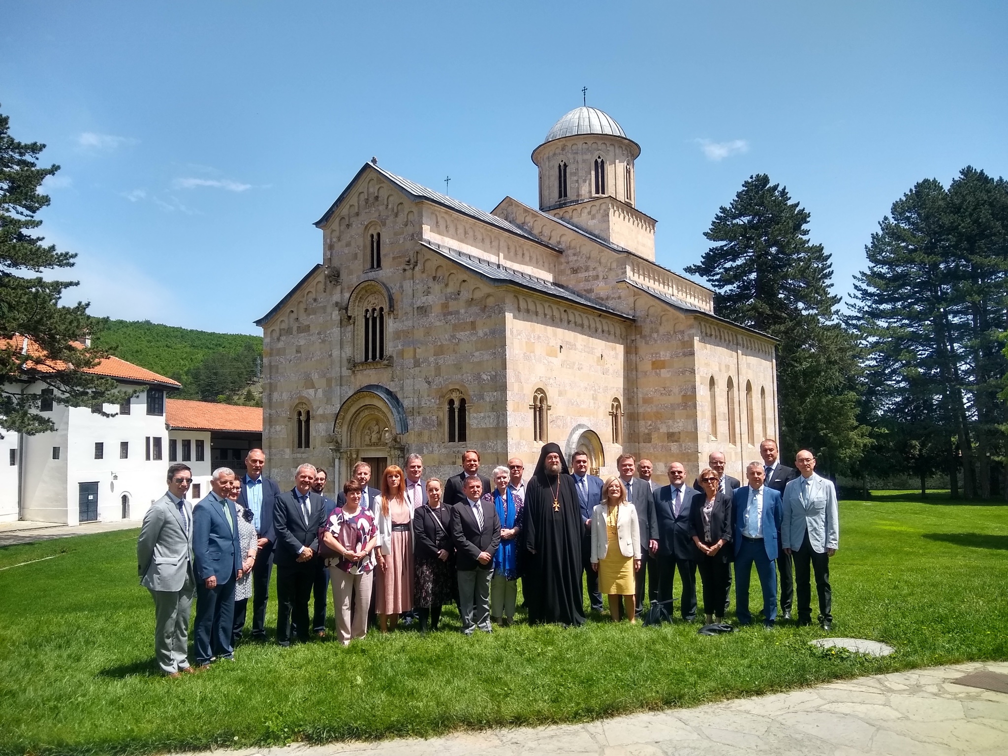 Diplomatët u pritën nga igumeni Sava Janjiq, derisa për këtë vizitë, përmes Twitter, njoftoi edhe ambasadori amerikan në Kosovë, Jeff Hovenier.