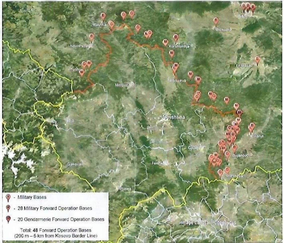 Së fundmi fqiu verior ka vendosur 48 baza operuese ofensive, nga to 28 janë baza ushtarake dhe 20 sosh të xhandarmërisë rreth kufirit të Kosovës.