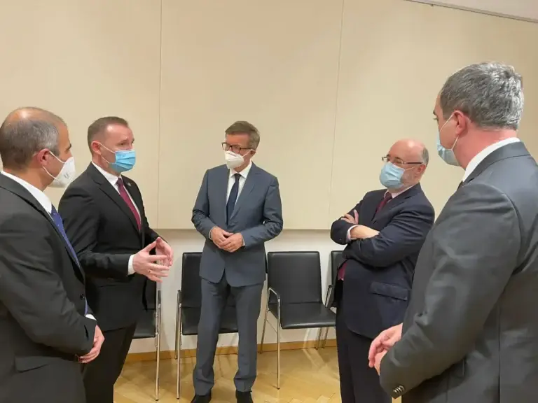 Në takim me z. Rudolf Anschober, ministër federal i Shëndetësisë, Çështjeve sociale, Përkujdesje dhe Mbrojtjen e konsumatorit, në Vjenë, së bashku me dr. Lul Rakën, diskutuam çështjen e pandemisë dhe menaxhimit të saj, veprimet e kundërvënies dhe luftimin e virusit Sars-Cov-2, kapacitetet spitalore dhe kapacitetin e testimeve.