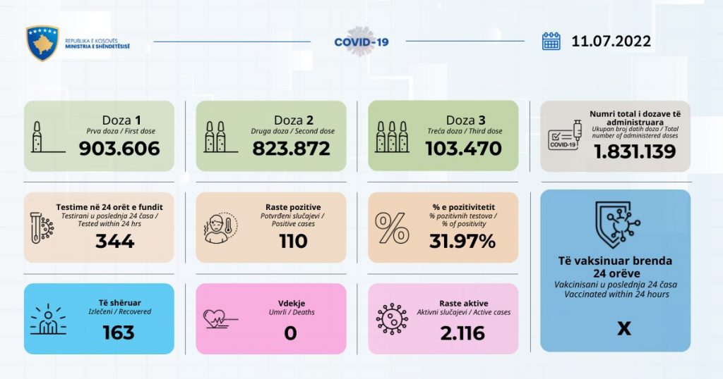 Ndërkaq, gjatë kësaj periudhe janë konfirmuar edhe 110 raste të reja me COVID-19.