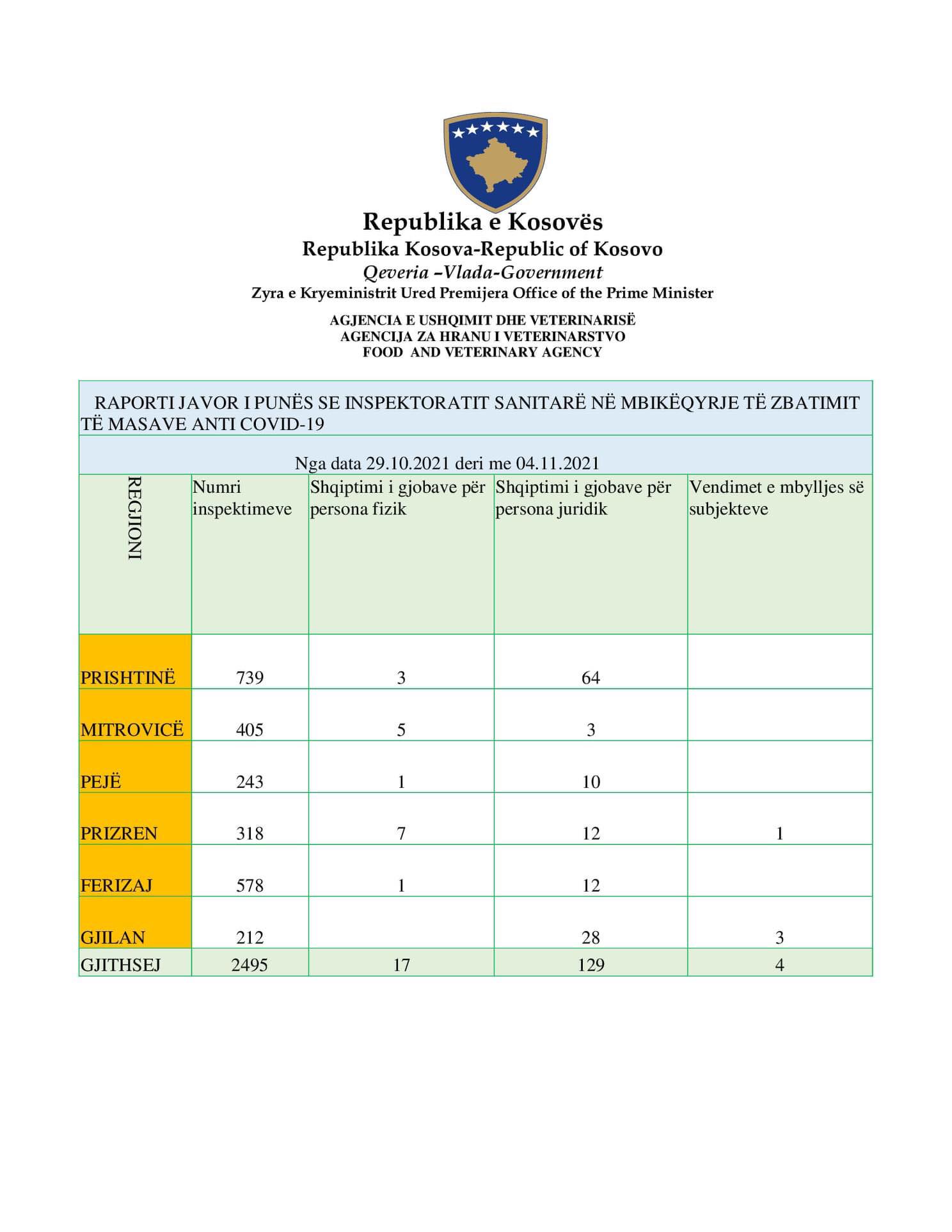 Sipas AUV-it, nga 29 tetor e deri më 4 nëntor janë realizuar gjithsej 2495 inspektime, në Prishtinë, Mitrovicë, Pejë, Prizren, Ferizaj dhe Gjilan.