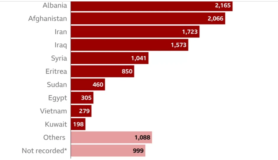 Qeveria britanike ka thënë se 12,000 shqiptarë kanë arritur në Britani këtë vit me anije të vogla, kryesisht burra të rinj që udhëtojnë vetëm.