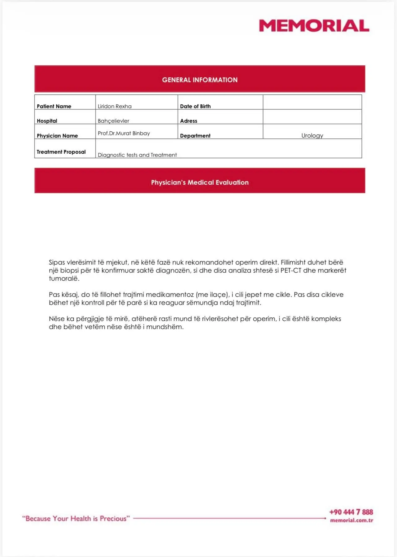 Përballë kësaj situate, mjekët kanë rekomanduar trajtim të specializuar urgjent në Turqi, ku ai tashmë ka nisur procedurat e para mjekësore. Megjithatë, ky ndryshim i menjëhershëm ka sjellë një rritje të ndjeshme të kostove financiare.
