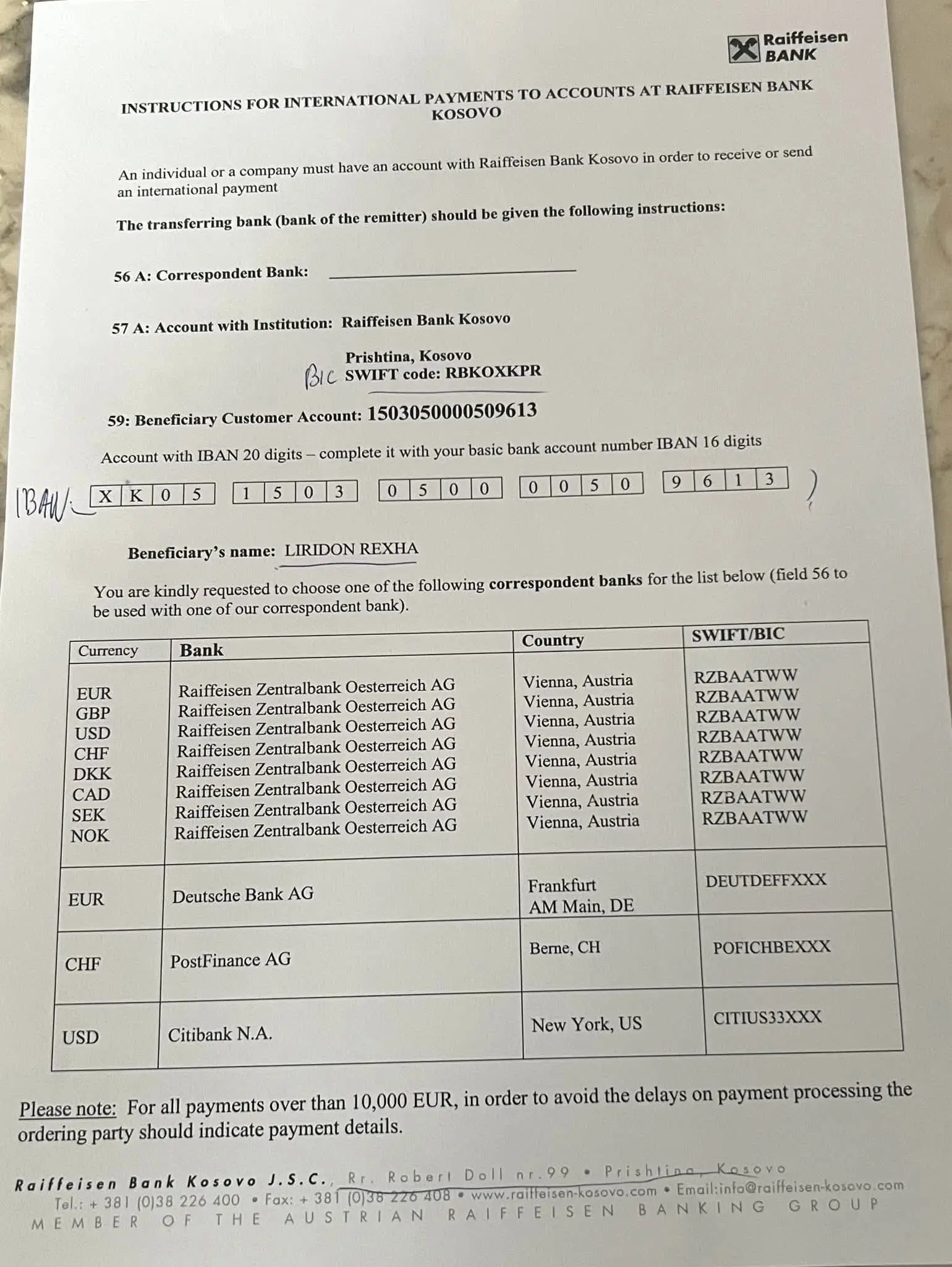 🔹 Nga Diaspora (IBAN / SWIFT)