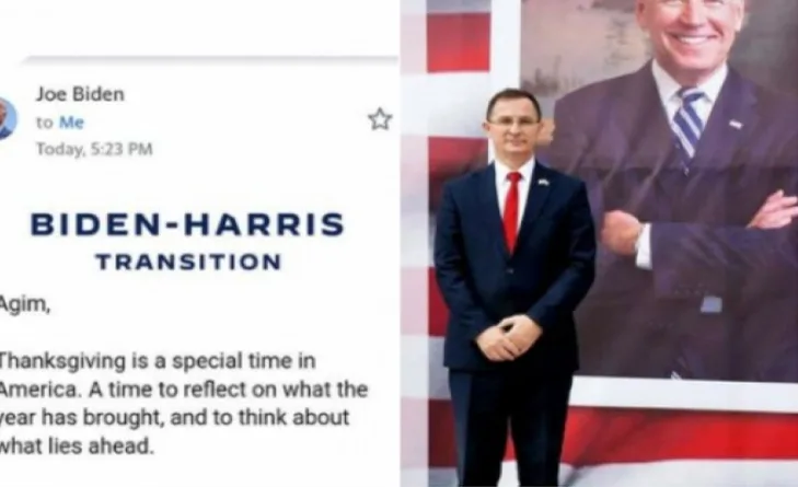 Kryetari i Shoqatës “Miqtë e Amerikës”, Agim Rexhepi, me rastin Ditës së Falënderimeve, ka pranuar një letër nga presidenti i porsazgjedhur i ShBA-së, Joe Biden.