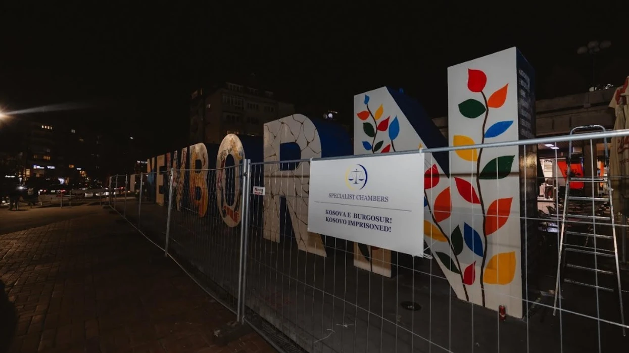 Në këto rrethoja është vendosur edhe tabela me logon e Dhomave të Specializuara, me mbishkrimin: Kosova e burgosur!