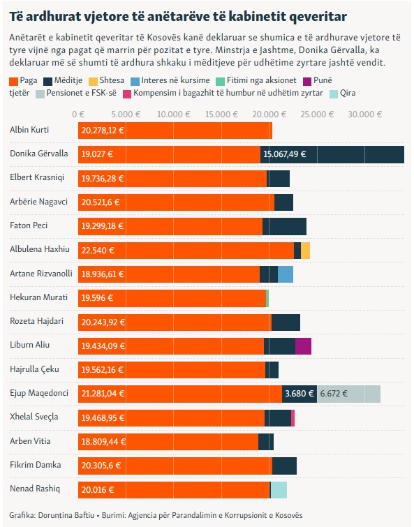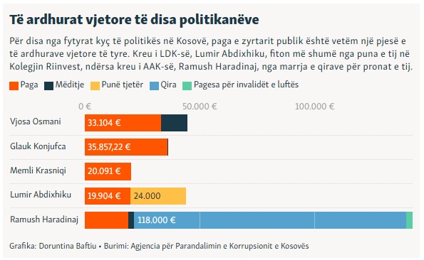 Nga ta, vetëm Krasniqi i PDK-së ka deklaruar se nuk ka asnjë të ardhur tjetër vjetore, përveç pagës së zyrtarit publik.