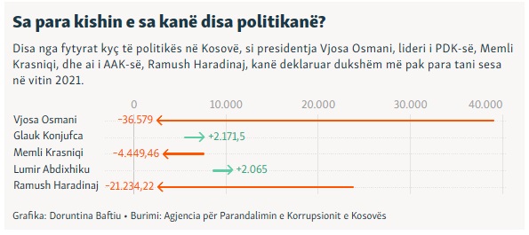 Në këtë listë hyjnë edhe zyrtarët e partive politike, si Memli Krasniqi i Partisë Demokratike të Kosovës (PDK), Lumir Abdixhiku i Lidhjes Demokratike të Kosovës (LDK), Ramush Haradinaj i Aleancës për Ardhmërinë e Kosovës (AAK), presidentja Vjosa Osmani, si dhe Glauk Konjufca, i cili për katër vjet mbajti postin e kryeparlamentarit.