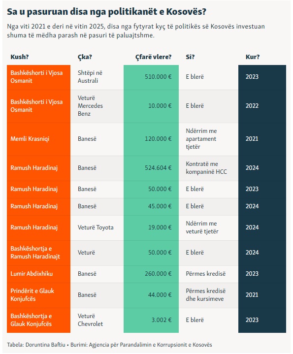 Çdo vit, Agjencia për Parandalimin e Korrupsionit (APK) e Kosovës publikon pasurinë që zyrtarë shtetërorë deklarojnë se e posedojnë. Banesa, toka, vetura, para të gatshme… Ja çfarë duhet të dini nga deklarimet e fundit.