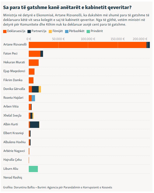 Sipas të dhënave në këto deklarime, ministrja në detyrë e Ekonomisë, Artane Rizvanolli, ka dukshëm më shumë para se kolegët e saj në llogari bankare.