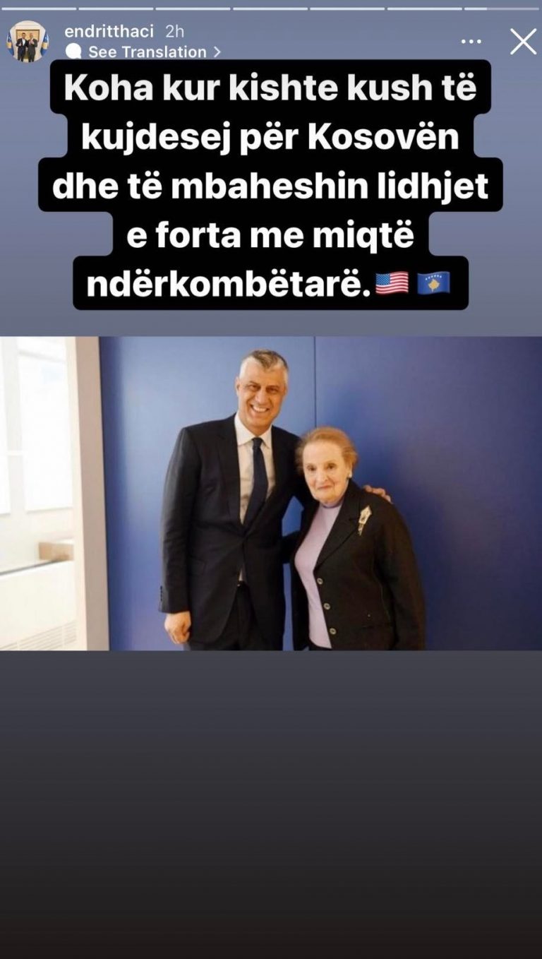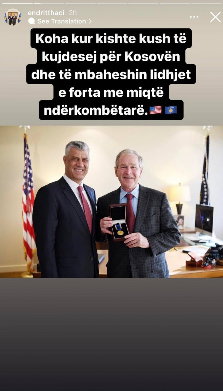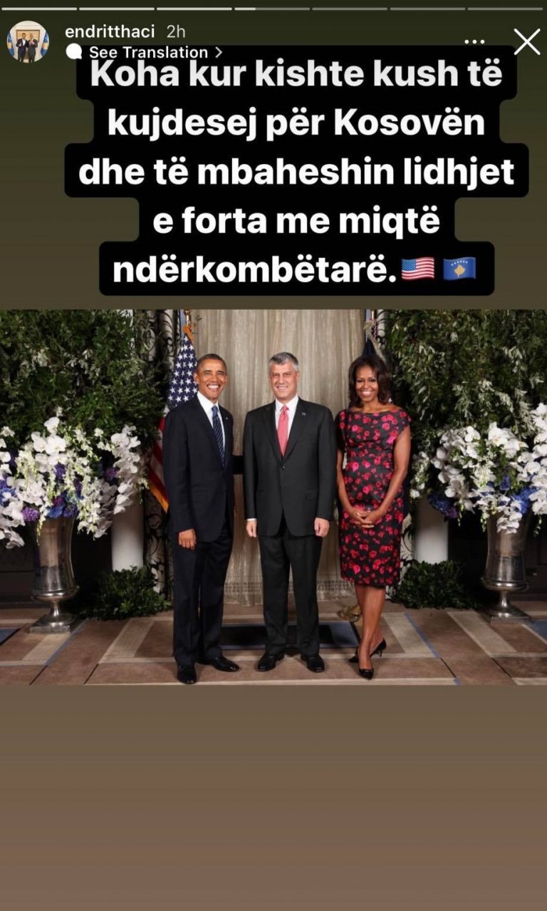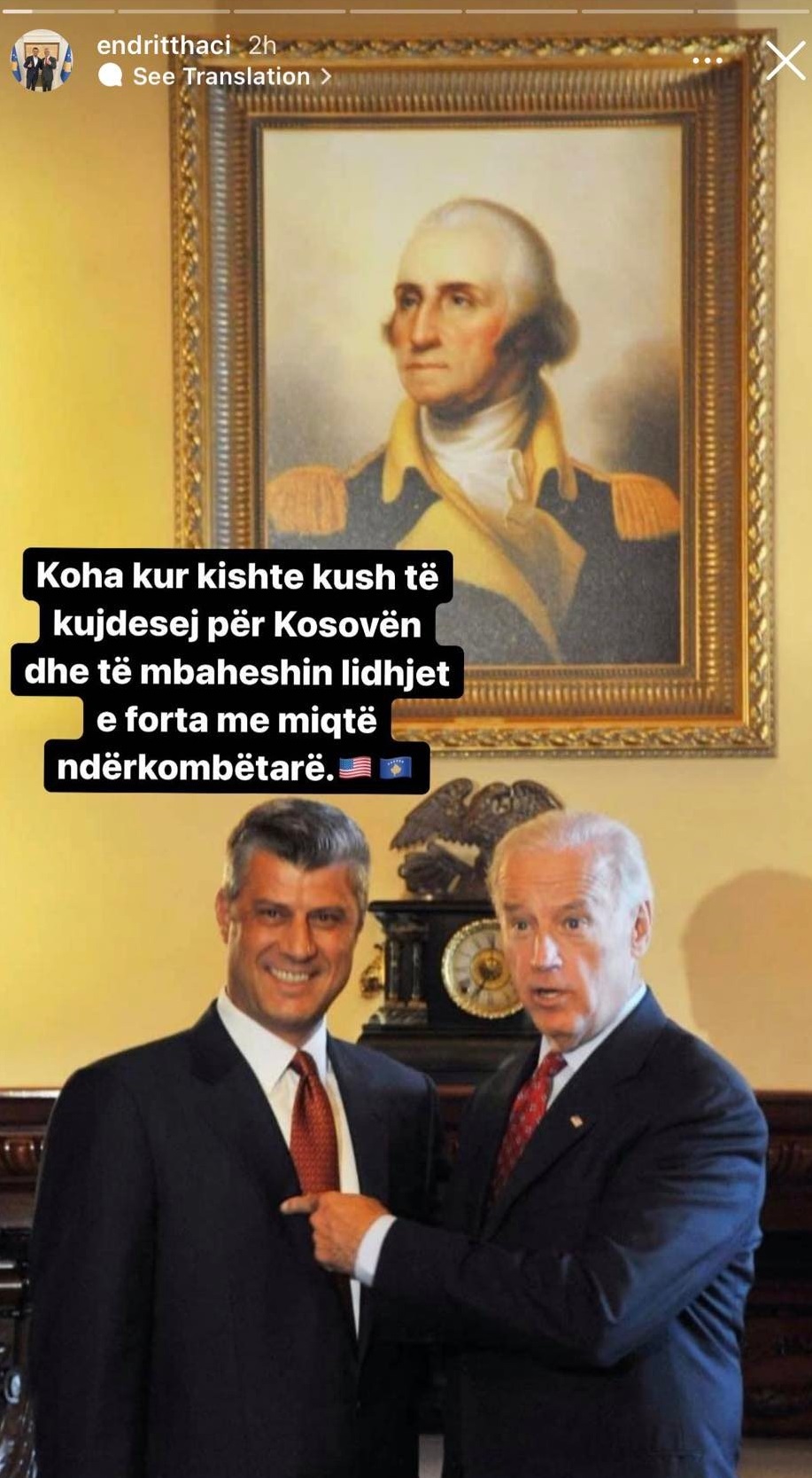 E para fotografi që ka postuar në llogarinë e tij në Instagram ka qenë ajo e ish-presidentit kosovar me presidentin aktual të SHBA-së Joe Biden, derisa shkruan “Koha kur kishte kush të kujdesej për Kosovën dhe të mbaheshin lidhjet e forta me miqtë ndërkombëtarë”.