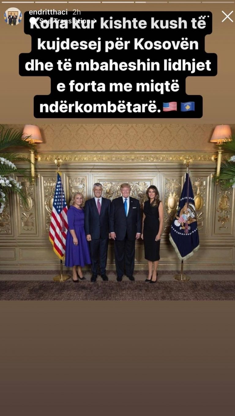 Me mbishkrimin e njëjtë ai ka shpërndarë edhe disa fotografi të tjera të Hashim Thaçit me ish-presidentët Bill Clinton, George W. Bush, Barack Obama, Donald Trump dhe ish-Sekretaret Amerikane të Shtetit Madeleine Albright dhe Hillary Clinton.