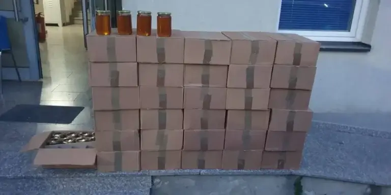 Sipas policisë, në automjet u gjetën gjithsej 372 kg mjaltë, të shpërndara në 31 paketa.