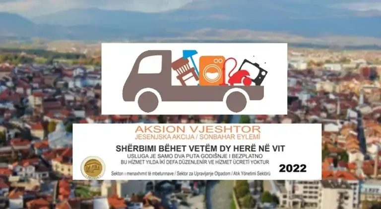 Komuna e Prizrenit nga sot do të fillojë aksionin vjeshtor për mbledhjen e mbeturinave të vëllimshme nga të gjitha amvisëritë. Aksioni do të realizohet në datat 1-7 Nentor. Sipas njoftimit të Komunës, mbeturinat e vëllimshme llogariten të gjitha gjësendet e vjetëruara që nuk përdoren, duke përfshirë orendi të vjetra shtëpiake, vitrina, set ulësesh, tepihë, pajisje teknike etj, raporton TV Prizreni.