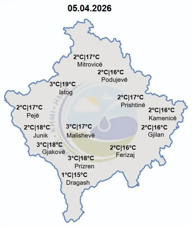 Sipas Institutit Hidrometeorologjik të Kosovës, dita e diel pritet të sjellë përmirësim të dukshëm të kushteve atmosferike, me vranësira të shpërndara dhe intervale të gjata me diell në të gjithë vendin. Mot i këndshëm dhe tipik pranveror do të mbizotërojë gjatë ditës.