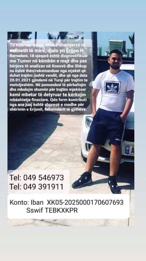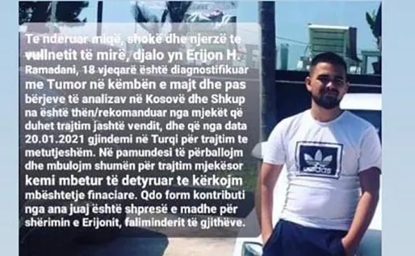 Djaloshi nga Suhareka, Erion Ramadani, është diagnostifikuar me tumor në këmbë.