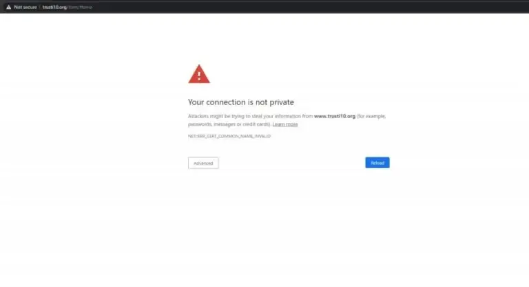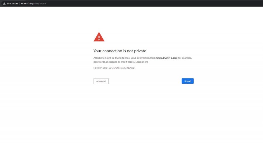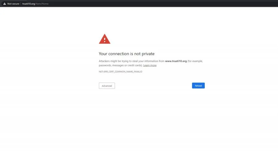 “Lidhja juaj nuk është private. Sulmuesit mund të jenë duke provuar që të vjedhin informatat tuaja nga ‘www.trusti10.org’ (shembull: fjalëkalimet, mesazhet apo kredit kartat)”, është teksti që shfaqet kur klikoni këtë faqe që tashmë ka rënë.