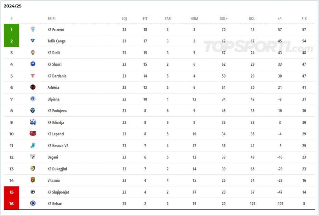 Në ndeshjen e fundit të zhvilluar ndaj KF Dardanisë, FC Prizreni doli fitues si mysafir me rezultat 0:2, duke regjistruar kështu fitoren e shtatë radhazi. Me këtë rezultat, klubi nga Prizreni grumbullon 57 pikë të plota, duke ruajtur me 100% sukses në këtë sezon dhe duke u pozicionuar në krye të tabelës.