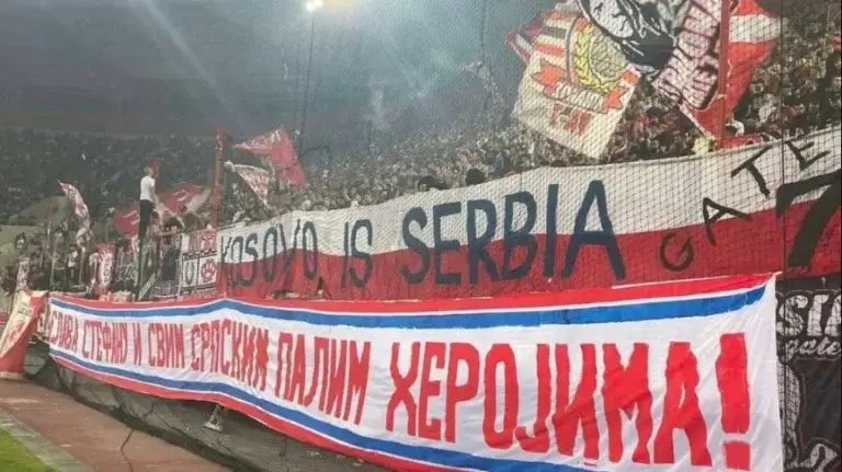 Në njoftimin nga FFK thuhet se shafqja e pankartave kundër Kosovës dhe mbështetja ndaj grupit të terroristëve të cilët kryen terror ndaj Kosovës pak ditë më parë është një shkelje e rëndë e vlerave të futbollin dhe e papranueshme në futboll.