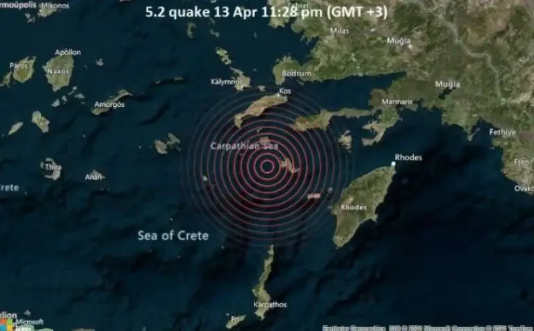 Një tërmet me madhësi 5.2 tronditi zonën e detit në perëndim të Tilos të martën në mbrëmje, sipas Institutit Gjeo-dinamik të Observatorit Kombëtar të Athinës.