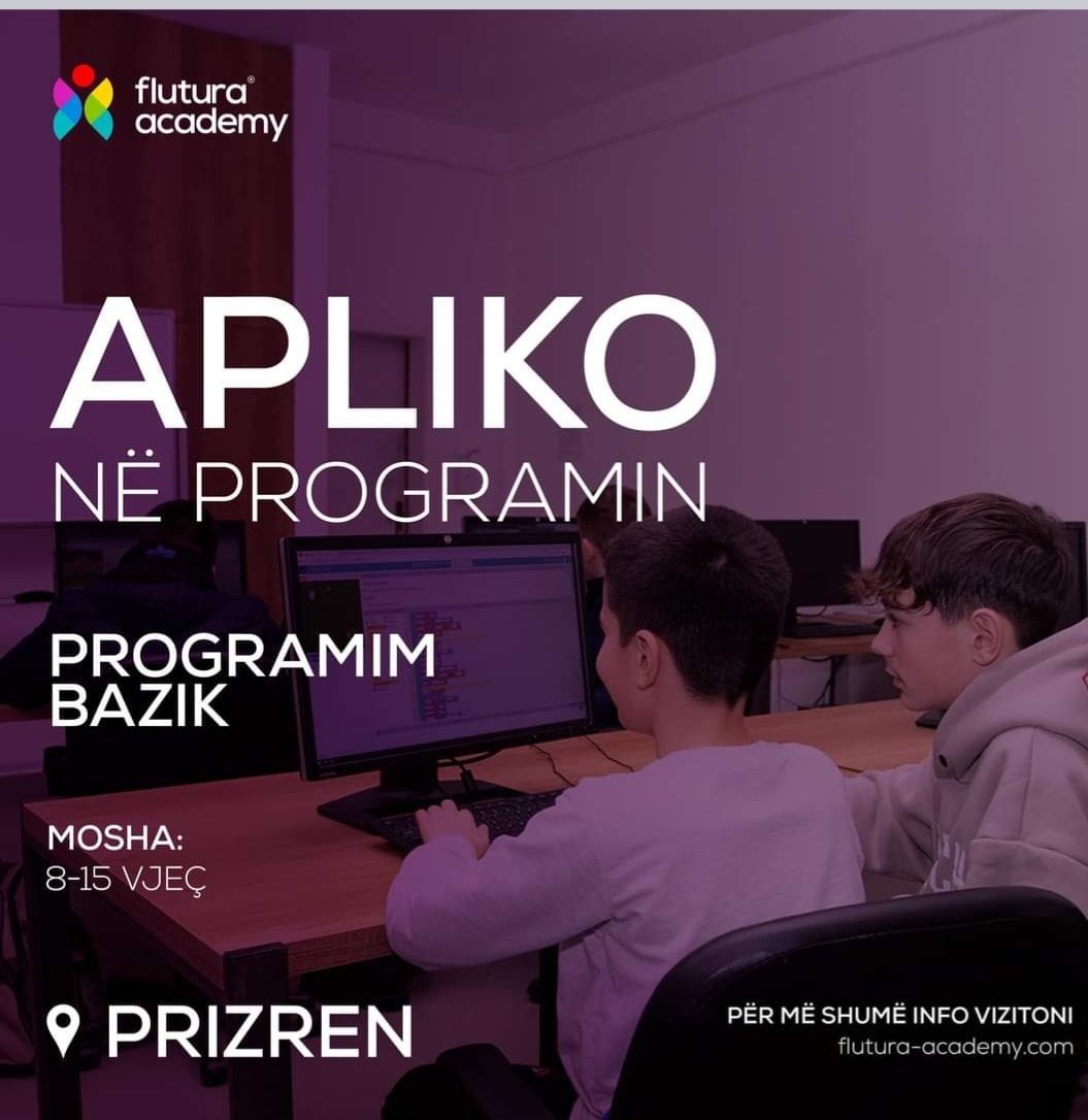 Flutura Academy njofton gjithë nxënësit e interesuar të Komunës së Prizrenit, se është bërë hapja e regjistrimeve për grupet e reja në programet profesionale për programim bazik, për grupmoshat 8 – 15 vjeç dhe program të avancuar, për grupmoshat 15 – 18 vjeç.