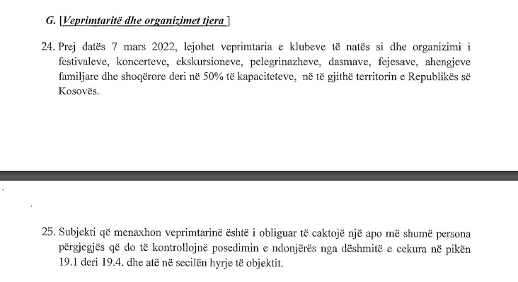 Në këtë vendim pëfshihet edhe hapja e klubeve të natës dhe sallave të dasmave.