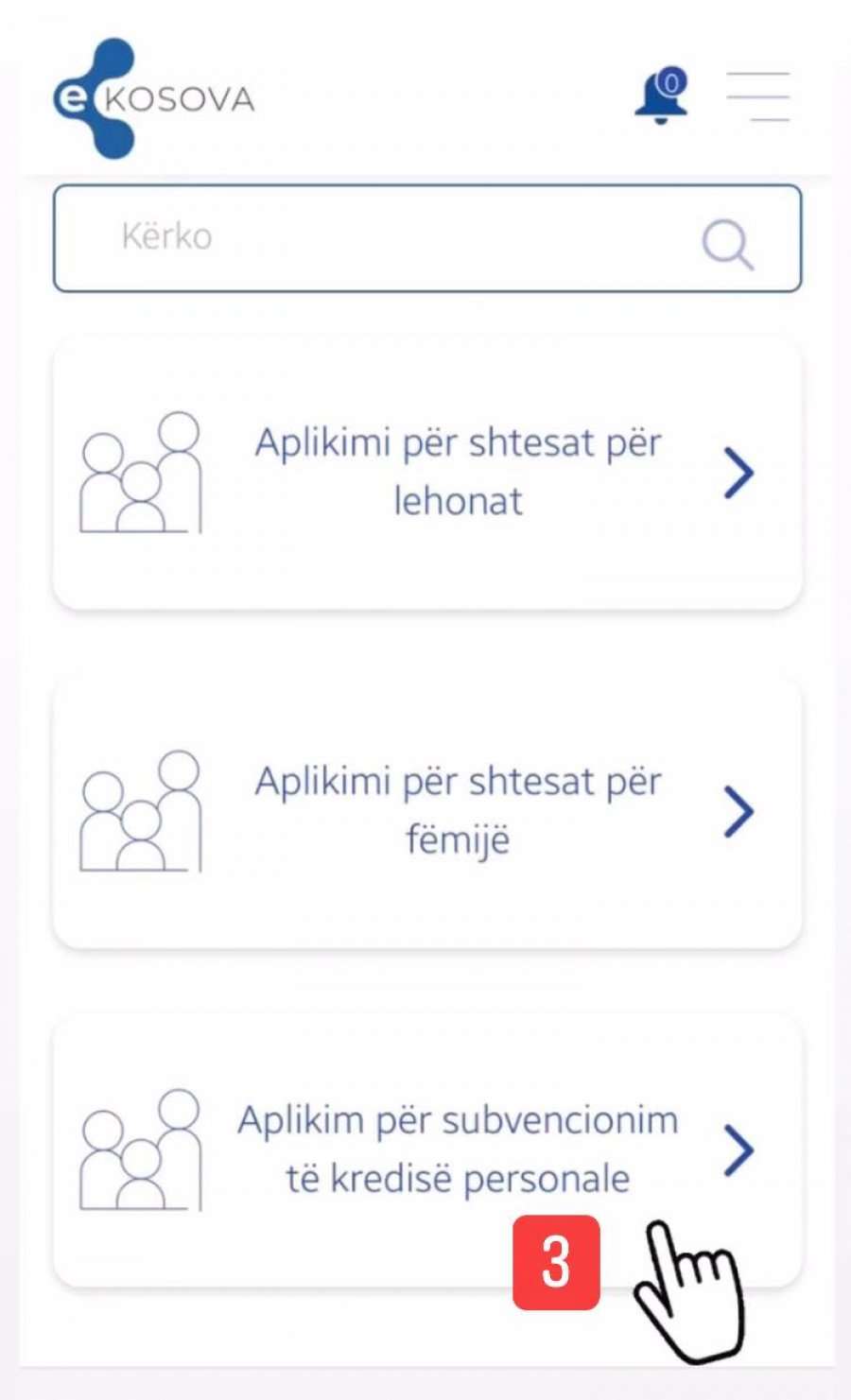 Për të përfituar subvencionin duhet të klikohet në opsioni shërbime – familja – aplikim për subvencionim të kredisë personale.