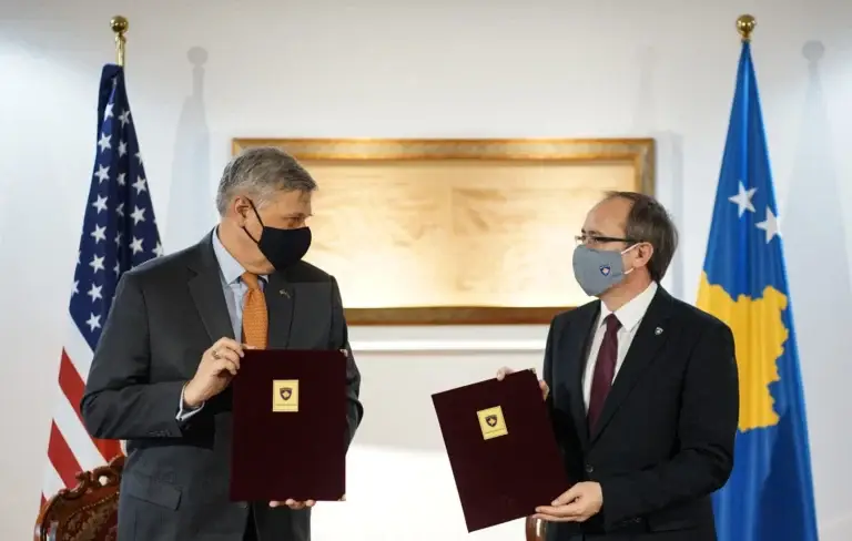 “Të gjithë ata që e kanë kritikuar këtë marrëveshje të nënshkruar në Shtëpinë e Bardhë, tash po i shohin përftimet që i kemi nga kjo marrëveshje. Duke filluar nga pika doganore në Merdarë, ku janë thjeshtësuar procedurat dhe është integruar pika kufitare atje. Sot bëmë një marrëveshje të re, ku siguron financimin për bizneset kosovare dhe për projektet që janë pjesë e marrëveshjes së Uashingtonit.