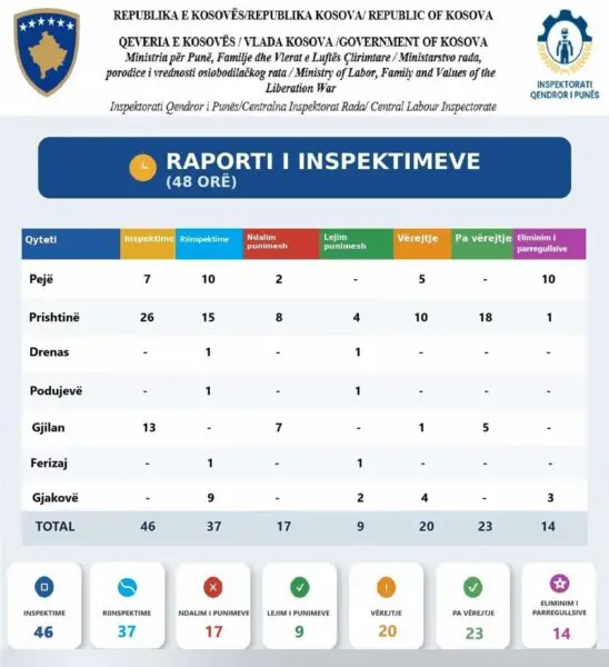 Ky aksion është marrë me vendim të Ministrisë së Punës në sektorët me rrezikshmëri të lartë në gjithë territorin e Kosovës.