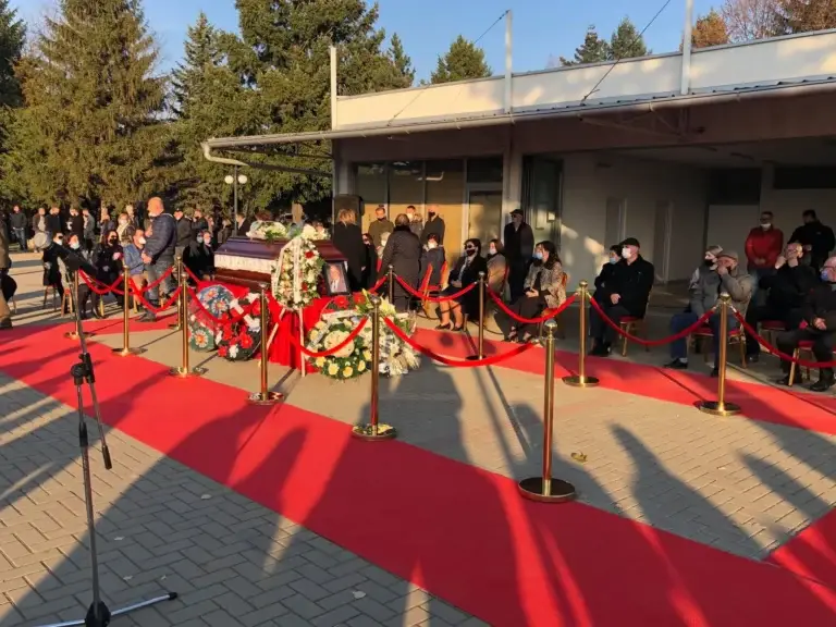 Në këtë ceremoni po merr pjesë ministrja e Kulturës, Vlora Dumoshi, kryetari i Komunës së Gjakovës, Ardian Gjini, ish-kolegë të artistit, politikanë, miq, dashamir e qytetarë të cilët erdhën për t’i dhënë lamtumirën e fundit doajenit të muzikës popullore.