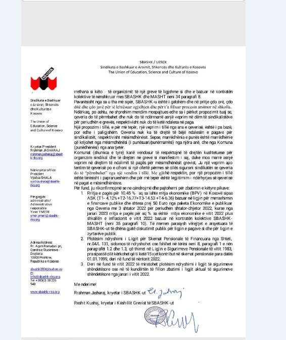Sindikata e Bashkuar e Arsimit dhe Shkencës thekson se kërkesat e tyre janë të bazuara edhe në kontratën kolektive.