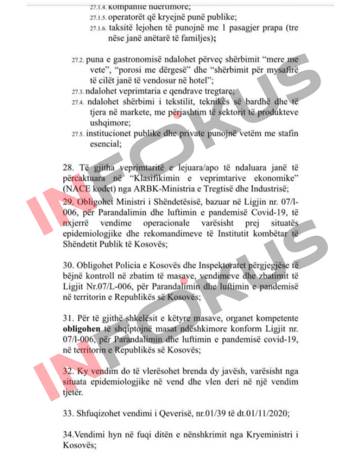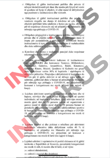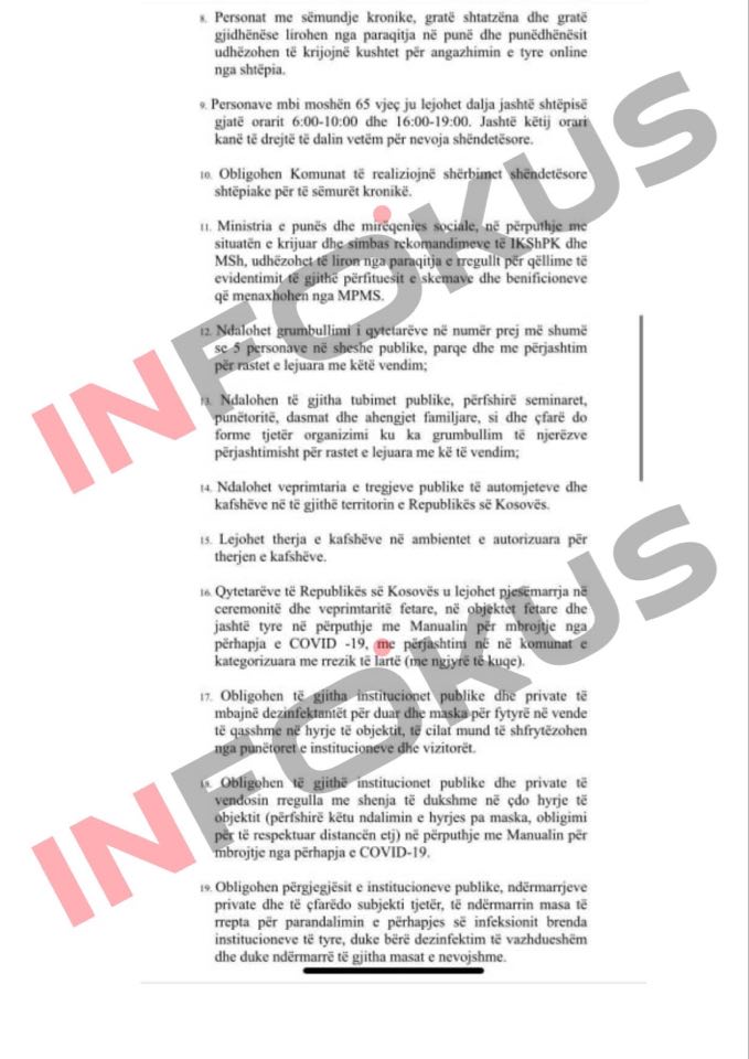 Gazeta inFokus ju sjell dokumentin me të gjitha masat të cilat pritet të hyjnë në fuqi në momentin që nënshkruhen nga kryeministri i Kosovës Avdullah Hoti.