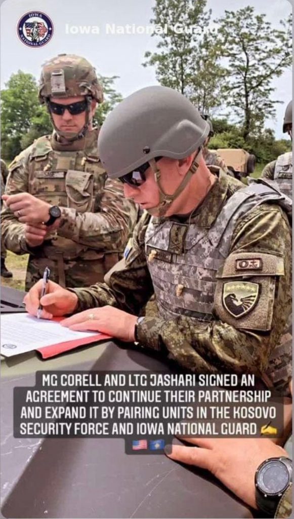 Komandanti i FSK-së Gjenerallejtënant Bashkim Jashari, i cili po qëndron për vizitë zyrtare në SHBA, ka nënshkruar marrëveshje bashkëpunimi me Komandantin e Gardës Kombëtare të Iowa-s, Gjeneralmajor Benjamin Corell.