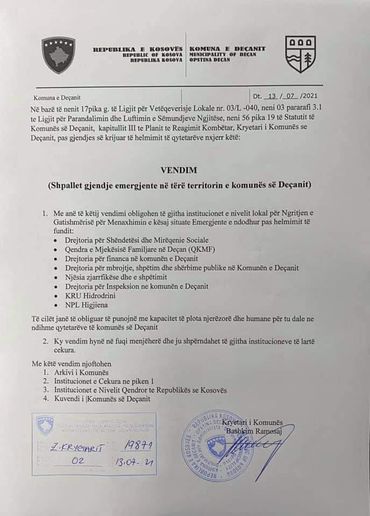 Komuna e Deçanit pak minuta më parë ka marrë vendim për shpalljen e gjendjes emergjente në të gjithë territorin e komunës pas helmimeve masive, raporton Gazeta Blic.Vendimi është publikuar në faqen zyrtare të komunës.