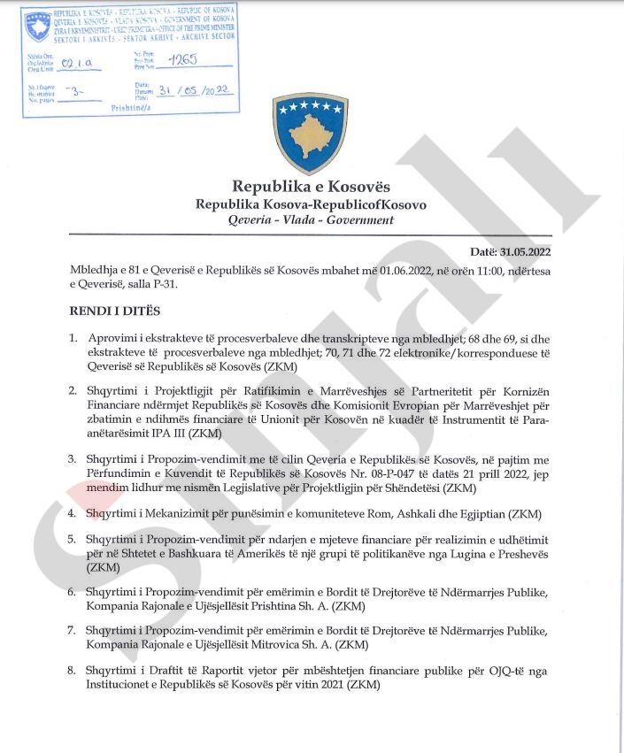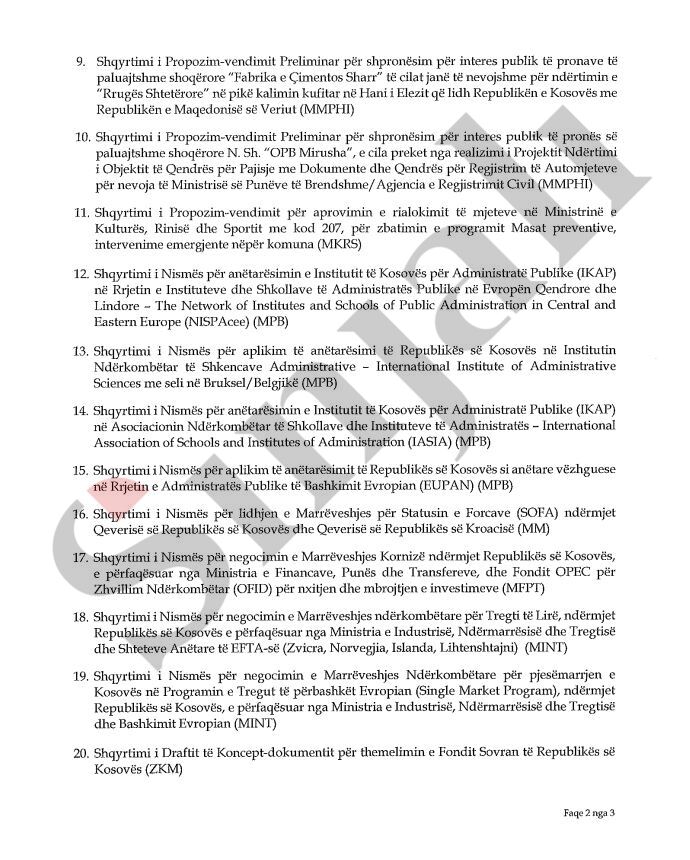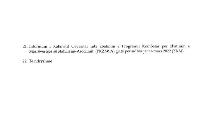 Në rendin e ditës, kabineti qeveritar do t’i shqyrtojë 22 pika të rendit, të cilat do të hedhen në votim.