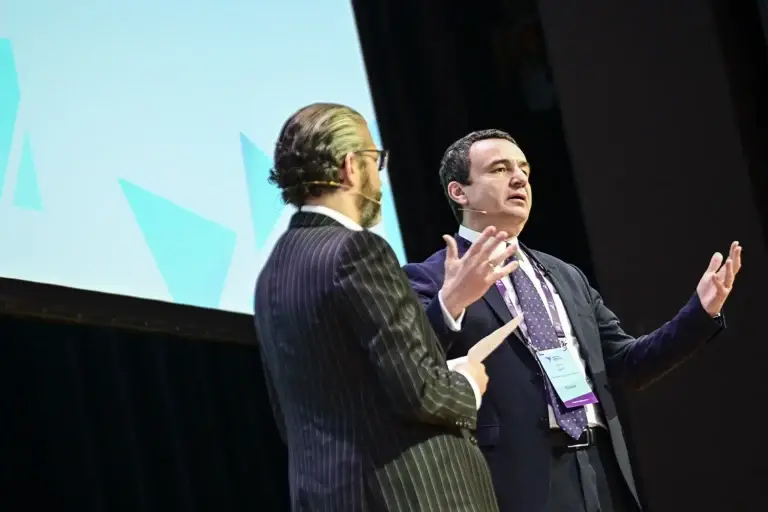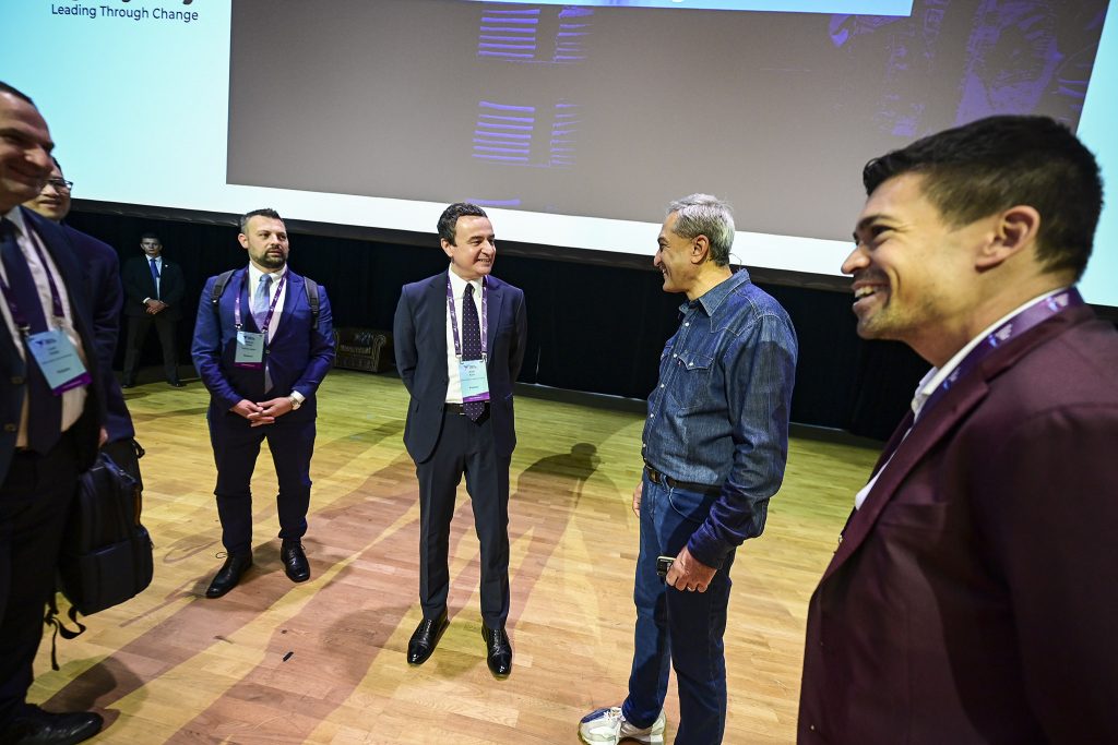 “Është nder për mua të jem këtu sot në mesin e disa prej mendjeve më transformuese në fushën e biznesit dhe teknologjisë. Me njëri-tjetrin ndajmë një qëllim të përbashkët: ndërtimin e organizatave të qëndrueshme, adaptueshme dhe inovative, të përgatitura për ndryshimet e shpejta që po e definojnë botën moderne. Unë jam këtu për t’ju bërë ftesë që të drejtoni shikimin tuaj kah juglindja (e kontinentit), në drejtim të një vendi të gatshëm për të mbështetur dhe rritur ambiciet tuaja – Republikës së Kosovës”, u shpreh kryeministri Kurti në fillim të adresimit të tij.