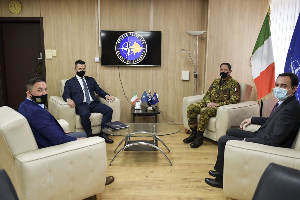 Kryeministri i Republikës së Kosovës, Albin Kurti, së bashku me ministrin e Ministrisë së Mbrojtjes, Armend Mehaj, janë pritur sot në takim nga komandanti i Forcave paqeruajtëse në Kosovë (KFOR) Gjeneralmajori Franco Federici, në selinë e KFOR-it në Prishtinë.