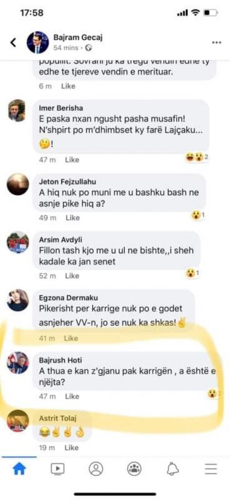 ”A thu a e kanë zgjanu pak krriken, apo është e njëjta”, ka shkruar në komentin e tij, tek postimi i Bajram Gecajt.