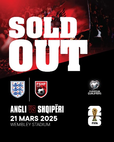 Të gjitha biletat e vëna në dispozicion për tifozët shqiptarë në stadiumin “Wembley” për ndeshjen e parë kualifikuese Angli – Shqipëri janë shitur.