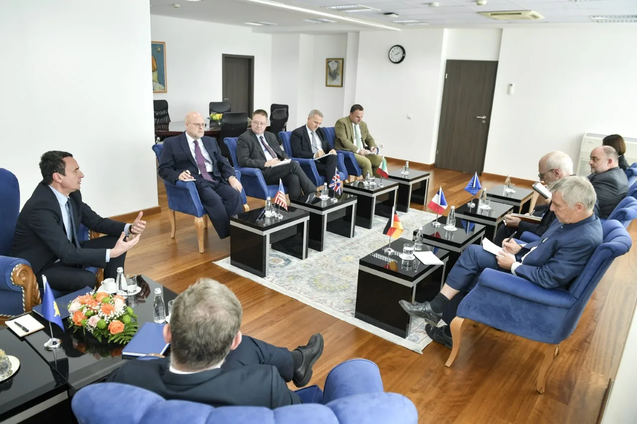 Kryeministri i vendit, Albin Kurti, bashkë me zëvendëskryeministrin e parë, Besnik Bislimi, priti në takim ambasadorët e vendeve të QUINT-it dhe përfaqësuesin e Zyrës së Bashkimit Evropian në Kosovë.
