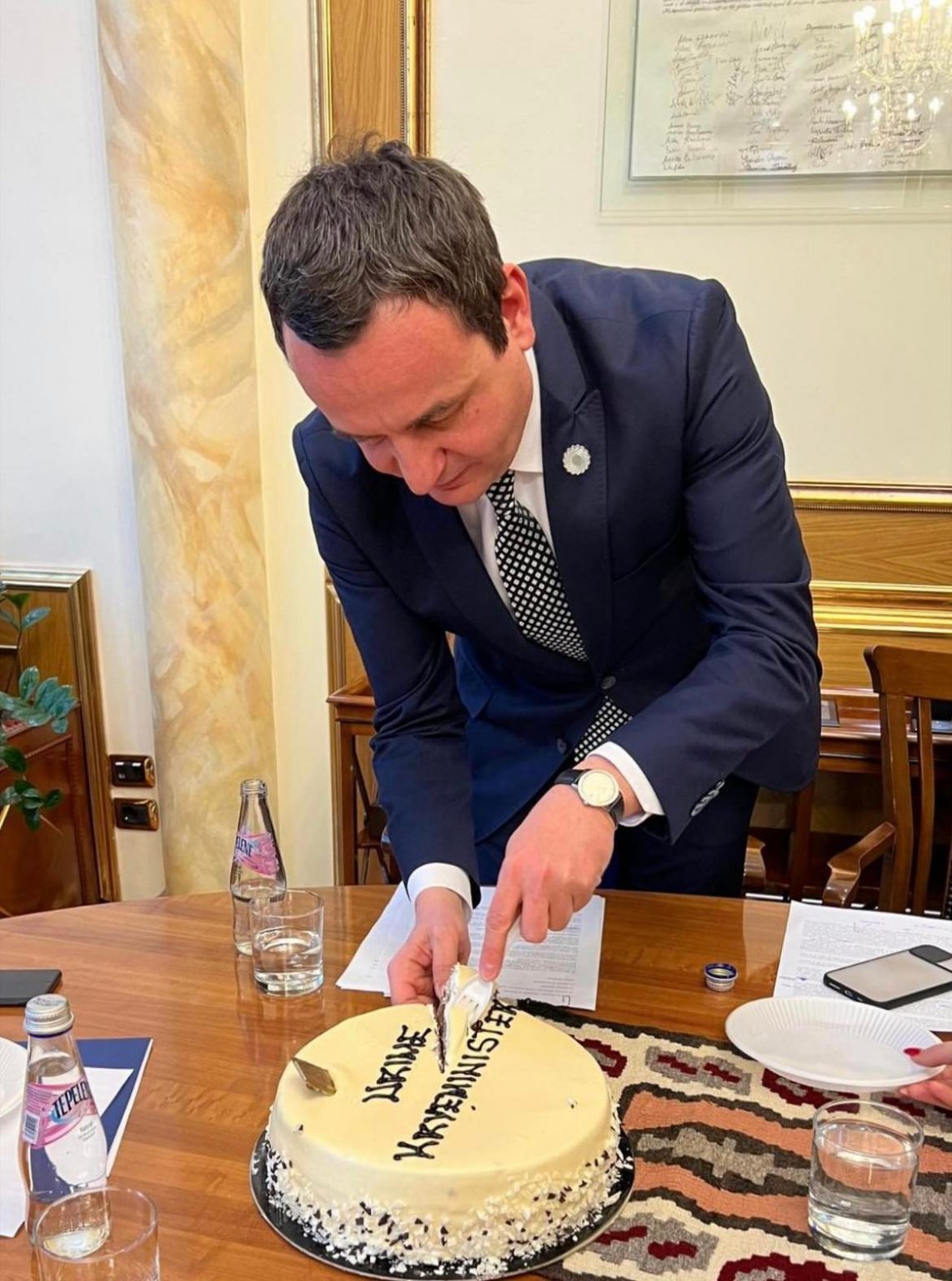 Një fotografi teksa Kurti pret tortën e ka publikuar këshilltari i Glauk Konjufcës, Ilir Kërçeli, mbi të cilën shkruan: “Urime Kryeministër”.